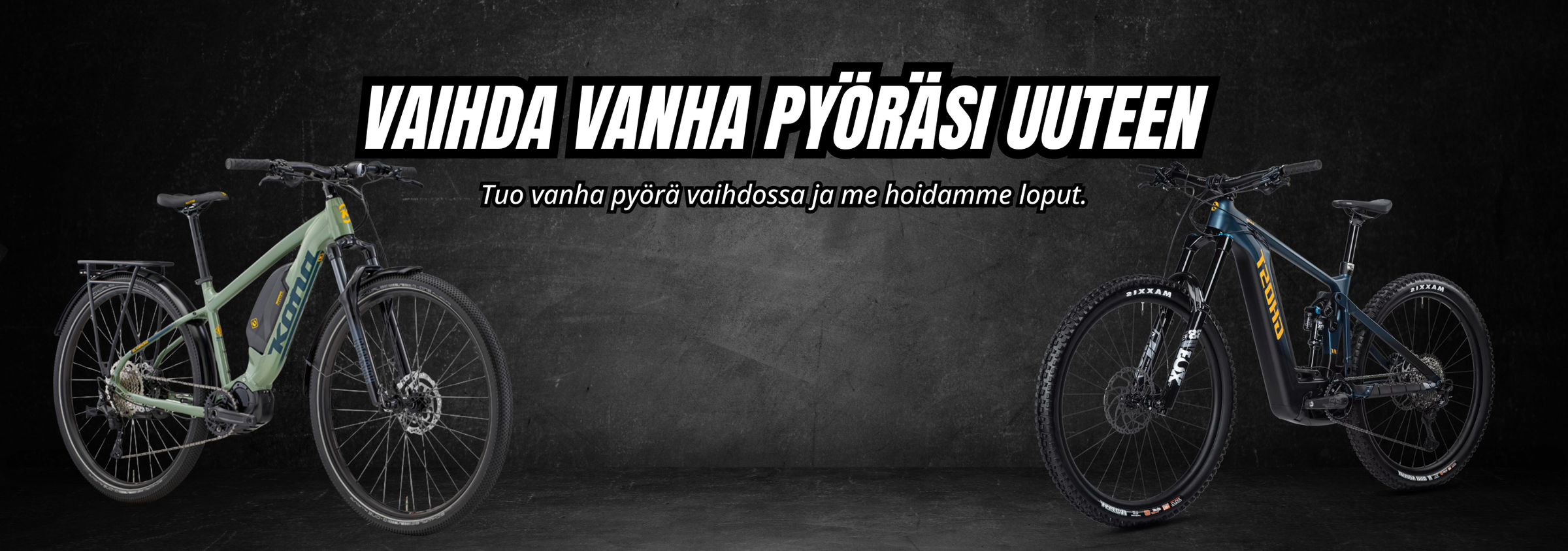 Meiltä löydät laajan valikoiman laadukkaita sähköpyöriä, polkupyöriä ja pyöräilytarvikkeita tunnetuilta huippumerkeiltä, kuten Haibike, Giant, Lapierre, Tunturi, Winora ja Ghost. Etsitpä sitten pyörää työmatkoille, vapaa-aikaan tai vaativille maastopoluille, asiantuntijamme auttavat sinua löytämään juuri oikean vaihtoehdon.
